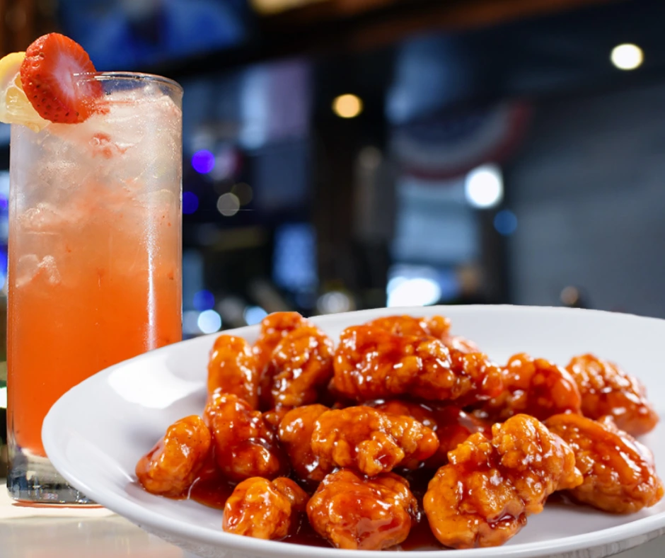 Served Over Loaded Mashed Potatoes with Bacon, Jack Cheese, Scallions & Roasted Corn Coulis. Topped with Fresh Onion Straws.